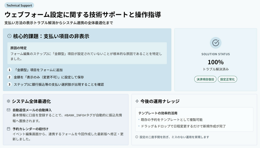 webフォーム設定に関する技術サポートと操作指導が行われました。