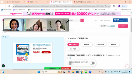また、あつこさんからは「アフェリエイトの貼り方を知りたい」とのお声をいただき、ご説明とその模様をzoom録画して差し上げました^^