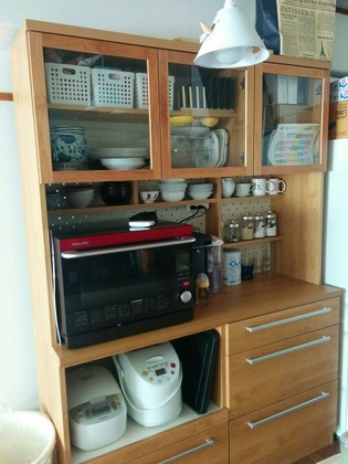 ↓2016年に大型の食器棚を買うまでは家電なども収納できず、とても不便でした💦