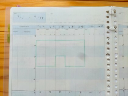 (この写真には写っていませんが、メンタルヘルスに睡眠不足の影響が大きいと知り、ウィークリーで睡眠時間をマーカーして転記してます)
