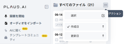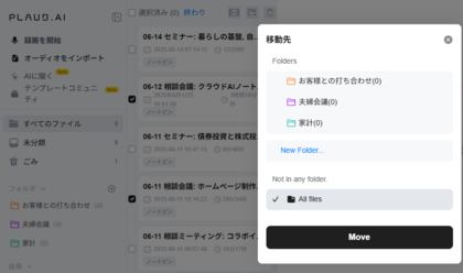 ファイル管理(フォルダに移動)➊すべてのファイル右にある「アクションボタン」→「選択」をクリック