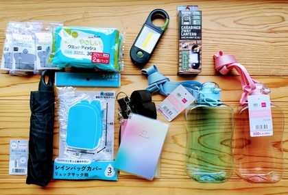 • ダイソー(ライト・水筒×2・グラデーションノート×2)