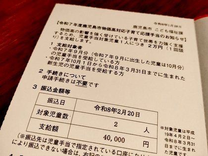 【物価高騰対応子育て応援手当】を子ども1人あたり2万円頂けた為、そちらを充当して負担感は少し減りました。