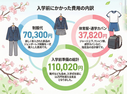 昨日の記事で、制服代は¥70,300-と書きましたので、そのほか購入品と金額詳細について