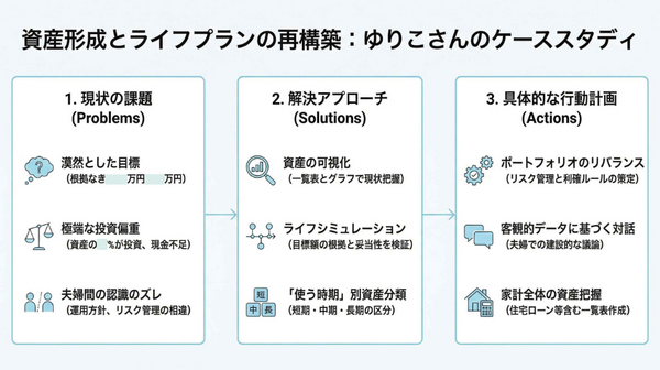 本日のセッションでは、漠然とした目標額の具体化、資産一覧表の作成、多くが投資に偏ったポートフォリオのリスクとリバランスの重要性、そして利確のタイミングについて深く掘り下げました。