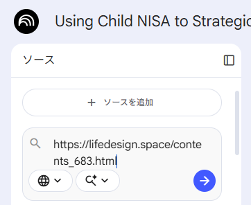 2回目からは、左端にある【ソースを追加】タブで🔍虫眼鏡マークの箇所へ該当ブログURLを入力