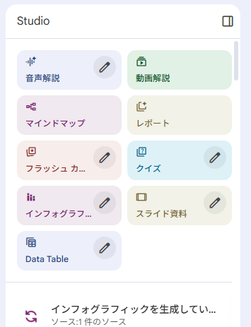 ↓右端【studio】一覧の中から、インフォグラフィック右横の【鉛筆】マークをクリック