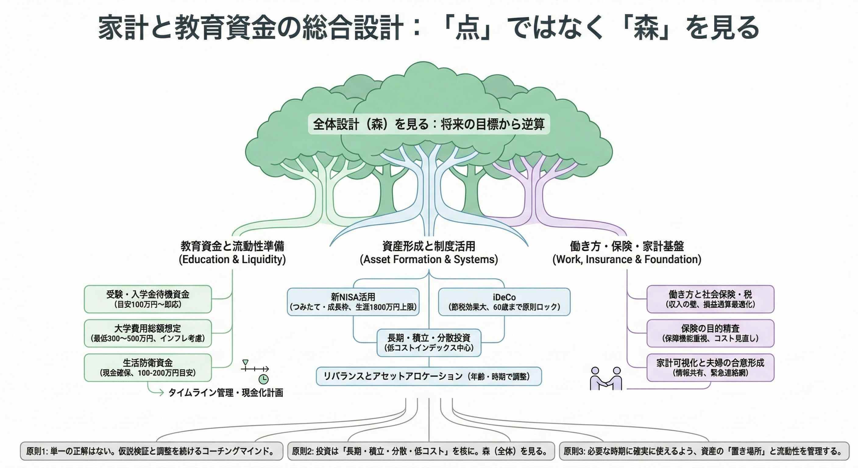 これらをバラバラに見るのではなく、人生全体のデザインとして統合的に捉えることが重要です。