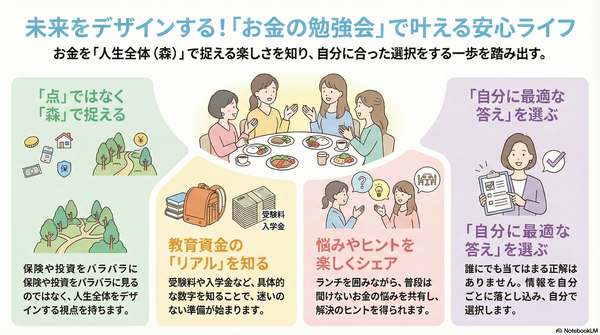 最後はランチを囲みながら、普段はなかなか聞けないお金の悩みを共有し、未来に向けた具体的なヒントを得る貴重な時間となりました。