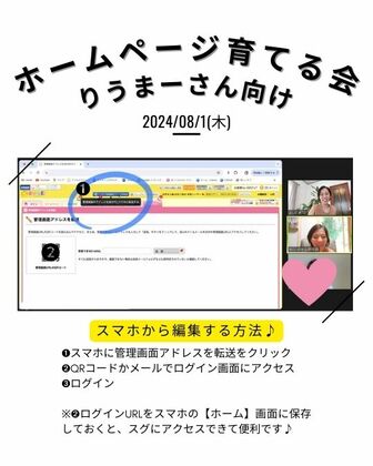 ご意見・ご感想 | ホームページ作成のスケジュール立てていた時は、期日に向かって行えていたけれど、他にやる事が出来て時間を奪われていたら、氣持ちも奪われていて、ホームページに時間を作れなくなってました。 有希さんの、みんなでホームページ育てるという企画のお陰で再びホームページと向き合える時間が作れました。 完璧でなくても、少しずつ修正しながら歩もうという考えも切り替わったので、力まず進められました。 ありがとうございました。 |